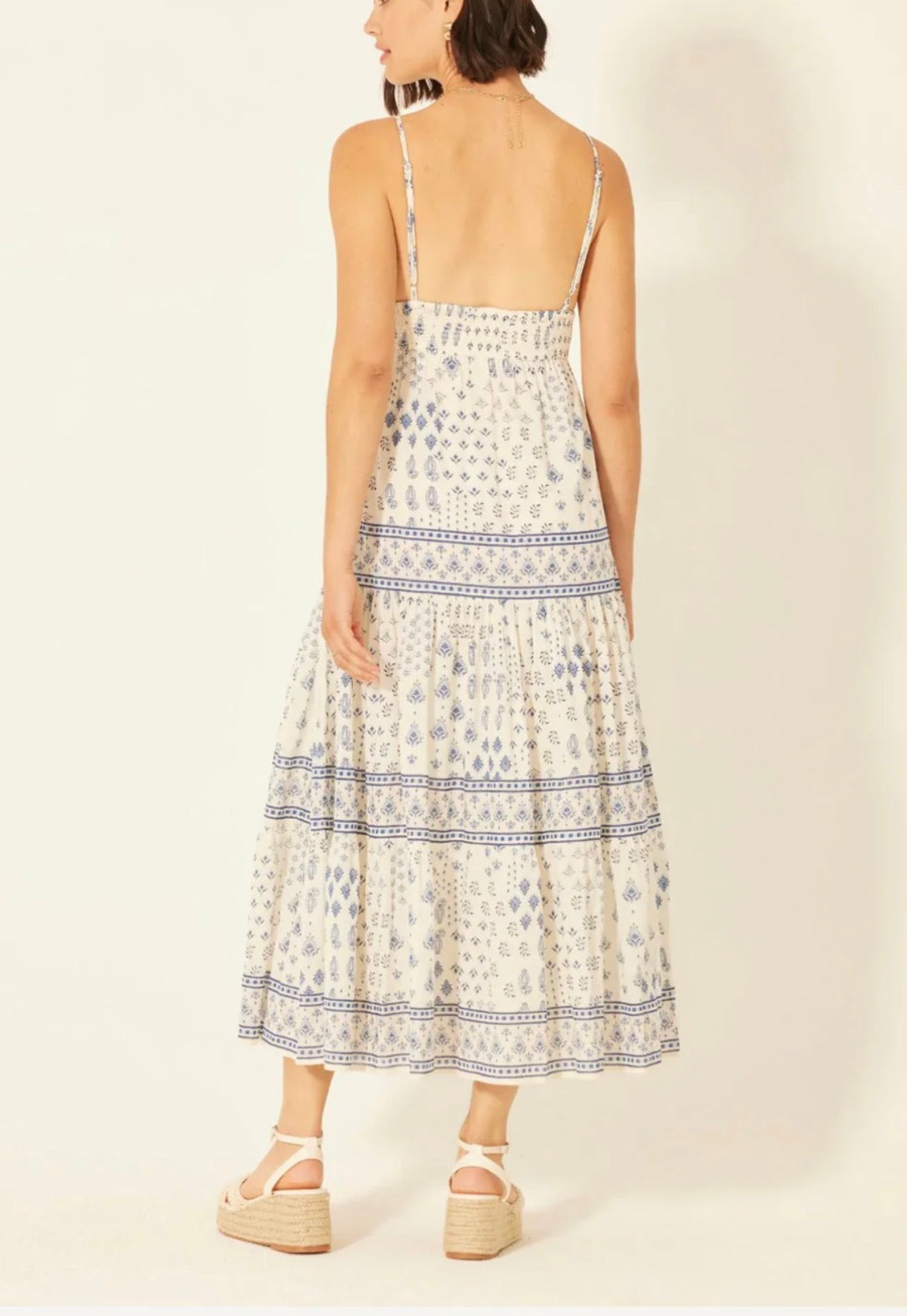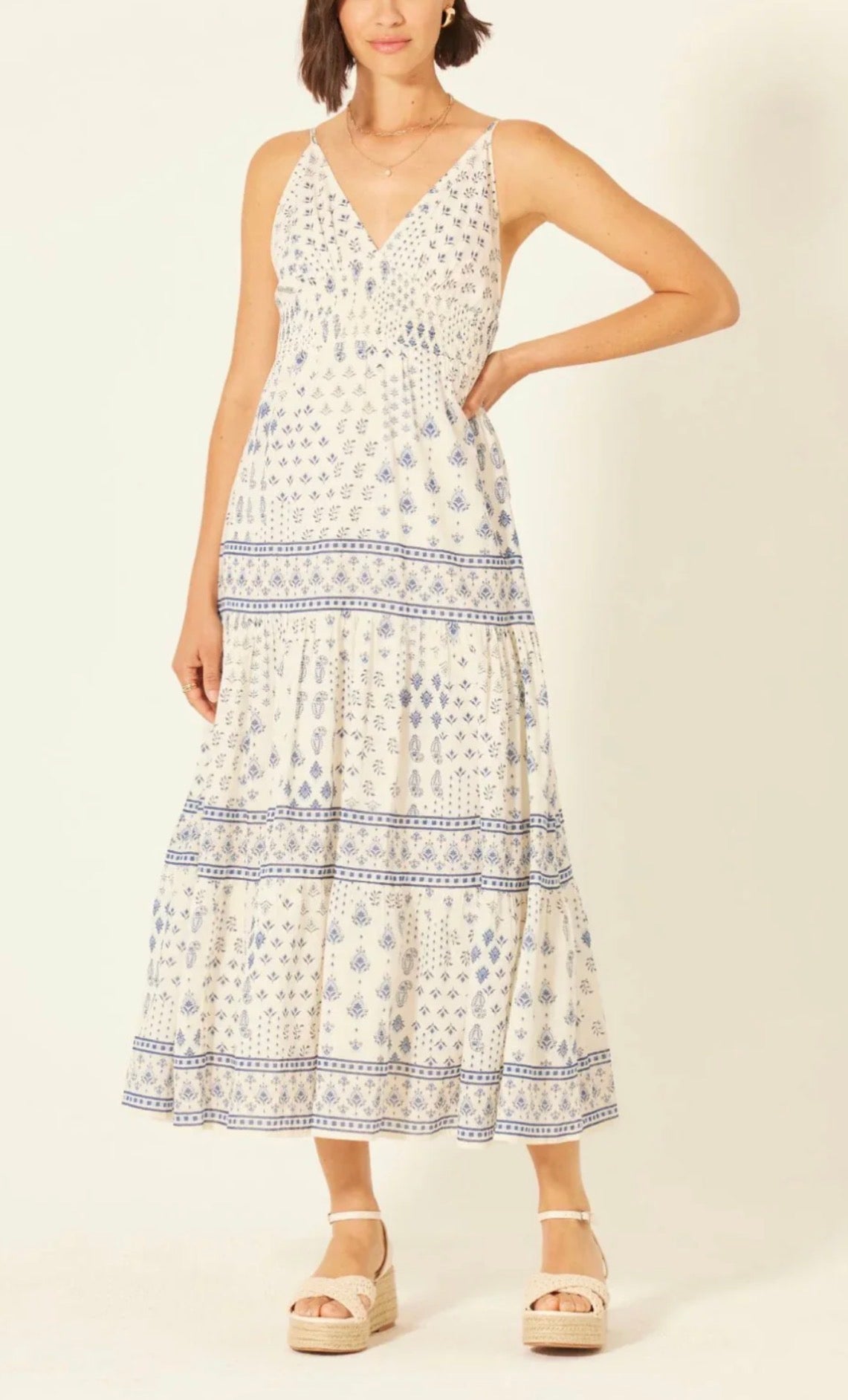 The perfect addition to your wardrobe. Made with a comfortable v neck design and adjustable straps, this dress is perfect for any occasion. The smocking under the bust line ensures a flattering fit every time.