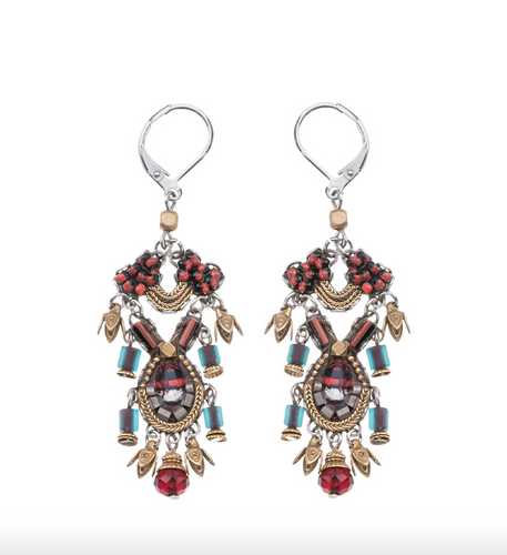 Artisan Alcohol Ink Small Teardrop Earrings - Red Multi