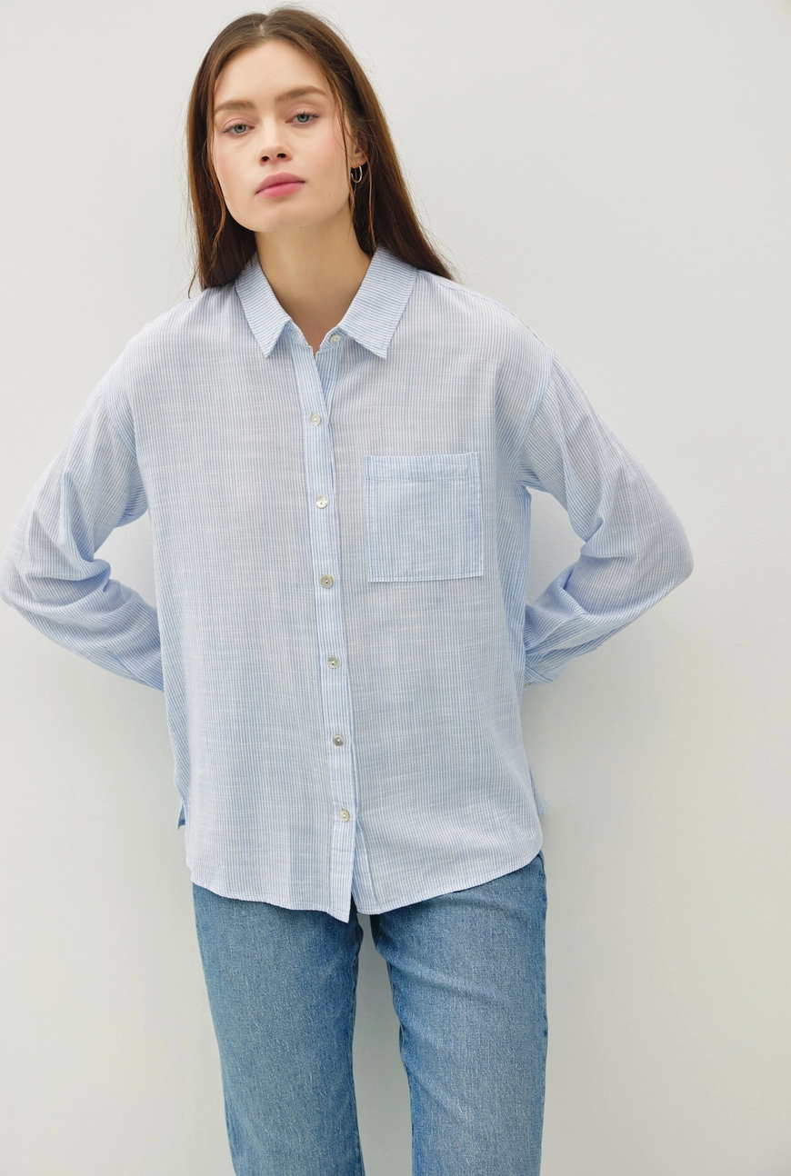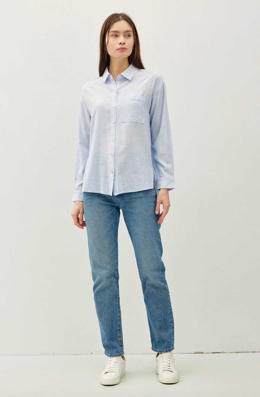 This soft, breathable shirt is easy to wear with a relaxed fit and front pocket. Great with jeans or shorts.